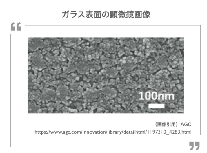 ナノの世界で見てみると、実はガラスの表面にも、多数の凹凸が存在しています。